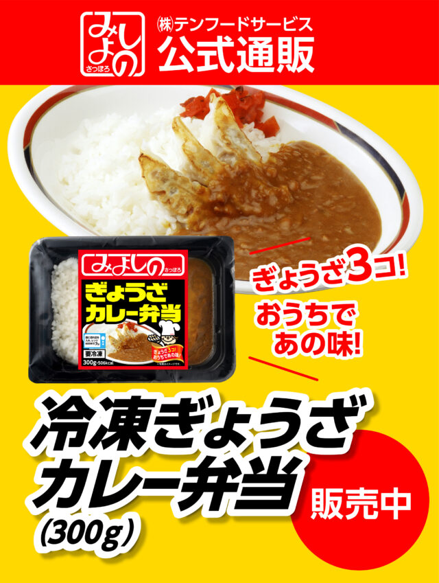 ぎょうざカレーファンの皆さーん!お待たせしました! 公式通販にて「冷凍ぎょうざカレー弁当300g」販売中! 冷凍庫にストックしておけば、忙しい日も大助かり! ひとりでも、家族でも、ちょうど良いサイズ感です!