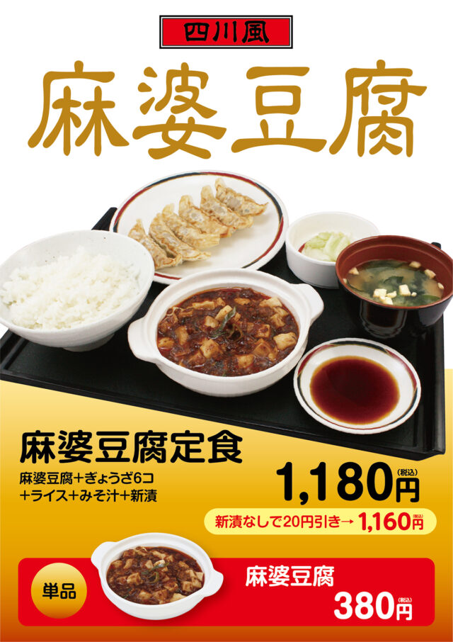 ピリ辛四川風本格麻婆豆腐が再登場! 「麻婆豆腐」は単品もございます。