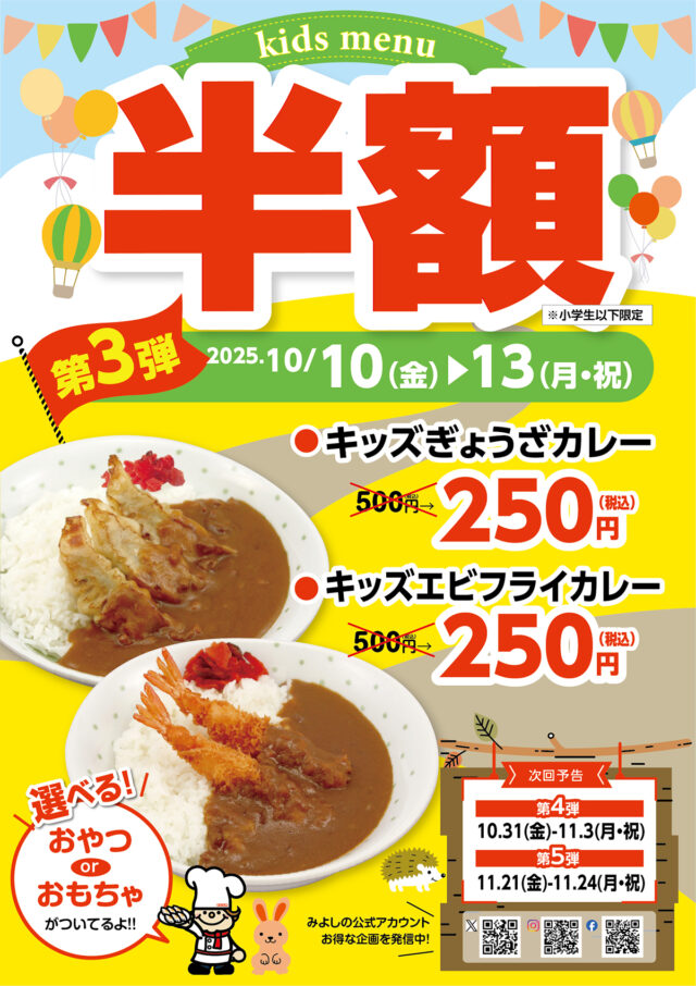 秋の連休は、ご家族みんなでおいしい時間をみよしので!お得な第3弾です!
