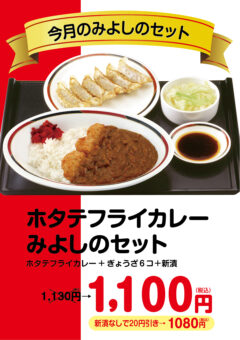 月替わりでお楽しみいただける【今月のみよしのセット】。11月は、サクッとジューシー、海の恵み「ホタテフライカレー」のお得なセットをご用意!