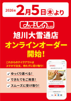 2/5(木)より、旭川大雪通店でオンラインオーダーを開始いたします。詳細は改めてご案内いたしますので、ぜひお楽しみに!