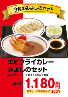 月替わりでお楽しみいただける【今月のみよしのセット】。1月は、サクッと幸せ「エビフライカレー」のお得なセットをご用意!